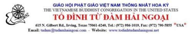 Nhân đây, chúng tôi kính giới thiệu đến quý vị : Tổ Đình Từ Đàm Hải Ngoại có một Thánh Địa đã được tạo dựng từ năm 2000 - Và, Tháp An Dưỡng để Trí Linh Cốt. Quý vị nào cần biết thêm chi tiết, kính xin trực tiếp với Ni sư Trú trì Thích nữ Hạnh Thanh qua số : (972) 986-1019 hay (469) 216-8982.