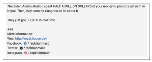 Khi Nhà Nước dùng tiền thuế của dân để tài trợ chiến dịch chống niềm tin tôn giáo như Biden chi ra nửa triệu đô để đả phá những 'huyền thoại' của Phật Giáo tại Tibet, thì Nhà Nước Mỹ hiển nhiên đã can thiệp vào niềm tin của thiên hạ (theo tố cáo của dân biểu Cộng hòa Brian Mast).